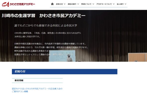 昨年に続きかわさき市民アカデミー様にて地域協働講座の生活を担当させて頂きます。